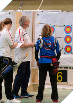 Üblicherweise kämpft im Bogensport jeder Schütze für sich alleine „gegen alle anderen“ um eine möglichst hohe Ringzahl…..beim Liga-Schießen bilden 3 Schütz(inn)en ein Team und es sind von diesem Team innerhalb von 120 Sekunden von jedem Teammitglied 2 Pfeile auf die beiden 3er-Spots (in jedem Spot max. 1 Pfeil) auf eine Scheibe in 18m Entfernung in der Halle zu schießen.In der Bogenliga treten Mannschaften / Teams gegeneinander an und das Zeitlimit schaft einen Zeitdruck, der in der Regel auch die Emotionen bzw. Anfeuerungsrufe deutlich hörbar werden lässt ..und auch gute Schütz(inn)en zu Fehlern verleitet.Das alles ergibt eine völlig andere Situation als auf den Meisterschaften im Bogensport.Weitere Details des Regelwerkes befinden sich hinter folgenden Links•Bogen und Pfeile - Bogenliga•Bundesliga Bogensport - DSB•Liga-Ordnung Bogen - NSSVAuszüge aus dem Kampfmodus in der Kreisliga• Eine Mannschaft besteht aus 3 Schützen (Wechsel zwischen den Passen sind möglich )• Ein Match besteht aus min. 3 – max. 5 Passen zu je 6 Pfeilen (je 2 pro Schütze)• Wertung nach „best of five“• Die 6 Pfeile müssen innerhalb von 2 Min. auf die Mannschaftsscheibe im Freien mit 3 x 80er-Spots(je Spot 2 Pfeile) und in der Halle mit 2 x „3 40er“-Spots (je Spot ein Pfeil) abgeschossen werden• Die Entfernung beträgt im Freien 30 Meter und in der Halle 18 Meter• Jede Mannschaft schießt bei einem Wettkampf (Jeder gg Jeden) je Schütze mind. 18 – max. 30 Pfeilen je Passe und 7 Match‘es‘ zwischen 127 und max. 210 Pfeilen• Wettkampfleitung: Hartmut Petersen